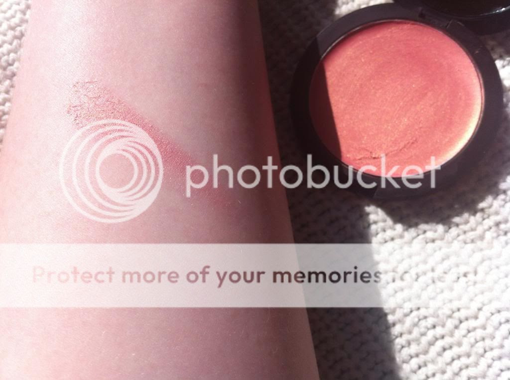The blusher itself is a gorgeous peachy pink with gold shimmer running though it, while it looks pretty bright in the pan it gives a lovely subtle glow to the cheeks which is perfect for everyday use. It lasts all day long and I can honestly say I haven't reached for another blusher since. I love that its so easy to wear and apply, in that you don't need to bother with brushes you can achieve a finished look with just your fingers.